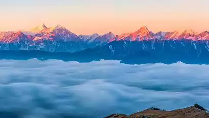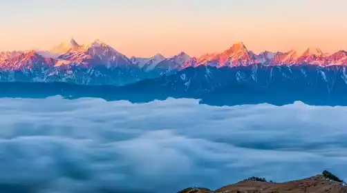 Huajian Mountain is another 360° viewing platform after Niubei Mountain, where you can watch the sunrise over the sea of clouds in the east and the golden mountain Gongga in the west.