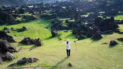 After breakfast, we set off for [Small Stone Forest], warm up for hiking, pack our equipment and start hiking.