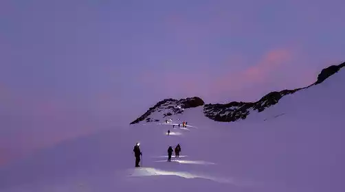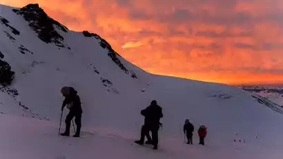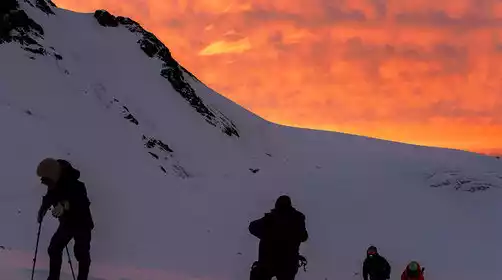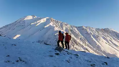 The Gangshika Three Peaks climb begins at 3:00 AM and departs from Base Camp at 4:00 AM. The closing time is 6 hours in winter and 5 hours in summer. Winter weather is stable, but guides may extend the closing time based on the distance to the summit and risk assessment. Summer afternoons are prone to thunderstorms, rain, and snow, so the time limit will be strictly controlled to ensure a safe return to Base Camp. After successfully reaching the summit, take photos and check in, then return to Base Camp. We then descend the mountain to the Colorful Waterfall and travel back to Xining.