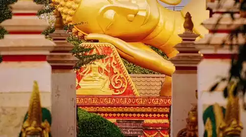After lunch and a short rest, we'll drive to the Tham Phu Kham Cave, where you'll find pristine countryside scenery that will leave you feeling refreshed and relaxed. Tham Phu Kham Cave is an unexplored natural cave. Climbing a simple staircase halfway up the mountain, you'll need to bend down to enter. This massive cave is considered sacred by the Lao people, and its main chamber houses a Thai-style golden reclining Buddha.