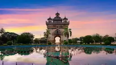 Then we headed to the Arc de Triomphe, a symbol of the China-Laos friendship. It is a symbol of the Laotian people's pursuit of freedom. Its appearance is similar to the Arc de Triomphe in Paris, France; but it has typical Laotian temple carvings and decorations, and exquisite carvings full of Buddhist themes, showcasing the traditional Laotian national culture and art. Standing on the top of the Arc de Triomphe, you can also have a panoramic view of the city of Vientiane.