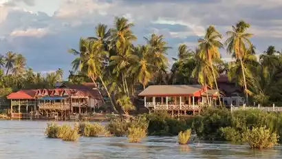 The Mekong River, flowing from north to south through Laos, widens for about 50 kilometers near the Laos-Cambodia border. During the rainy season, this stretch reaches a maximum of 14 kilometers, marking the widest section of the Mekong River in Laos. During the dry season, when the river recedes, hundreds of small islands appear along this section, earning the locals the nickname "Four Thousand Beautiful Islands."