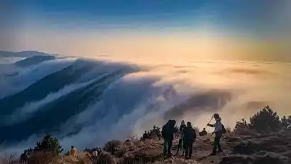 The sea of clouds and sunrise at Prince Peak have long been famous in the outdoor circles of East China. If the weather is good, we can witness the wonders of both the cloud waterfall and the sunrise at the same time!