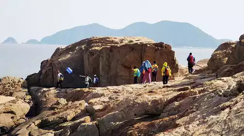 Arrive at Songlan Mountain in Xiangshan around 11:00 AM and begin your day's hike along the ridgeline, coastline, and plank trails, with lunch available along the way. Songlan Mountain boasts numerous capes and bays, with stretches of sandy beaches. The trail passes by Baisha Bay Beach, Central Beach, and East Beach, creating a vibrant blend of mountain, sea, island, cliff, beach, and bay. The trail runs along the coastline of Songlan Mountain, from East Beach in the south to Baisha Bay in the north. It follows a plank path along the coastal reefs and beaches, with coastal viewing platforms and observation decks along the way. This is the largest land-based beach in East China. You can collect shells and search for crabs along the way, but please be careful!