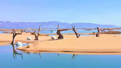 After breakfast, depart from downtown Wuhai and head to Wuhai Lake, known as the "Thousand Islands of Desert Lake." Half Yellow River, half yellow sand, it attracts celebrities and tourists from around the country, becoming a nationally recognized online tourist attraction in 2024. This unique landscape, half desert, half sea, and the connected sand and sea, attracts visitors from all over the country.