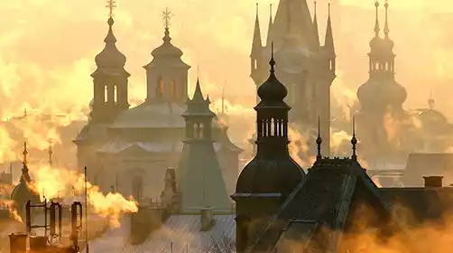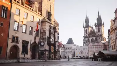Prague's early morning, still untouched by the hustle and bustle of tourists, carries a hint of the night's coolness. Strolling to Old Town Square, sunlight pierces through the clouds, casting a warm glow on the historic buildings surrounding the square. In the distance, the Baroque St. Nicholas's Church and the Gothic Tyn Church complement each other, their black spires appearing particularly majestic in the morning light.
