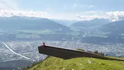 Standing on the top of the mountain, you can see the entire Innsbruck and the surrounding Alps. Under the blue sky, the snow-covered peaks form a sharp contrast with the colorful city, forming a picture with great visual impact.