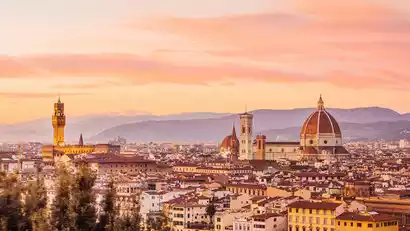 Before sunset, we will arrive at Piazzale Michelangelo on the southern hills of Florence. From this high vantage point, we will be able to take in the city's famous attractions, including the Cathedral of Santa Maria del Fiore, Piazza della Signoria, and the Arno River, and enjoy the beautiful sunset.
