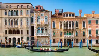 Arrive at the romantic water city [Venice]. As one of the few cities in the world built entirely on water, the entire city of Venice consists of 117 small islands connected by more than 150 canals.