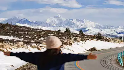 Leaving Tagong, we drove towards the Snow Mountain Rainbow Highway. The highway winds through the snow-capped mountains like a colorful ribbon, with the snow on the tops shining.