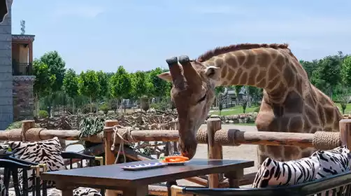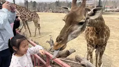 After dinner, there are many amusement facilities to enjoy, including a small roller coaster, a car around the cute pet area, and a carousel. Parents can bring their children to play to their heart's content. After a short rest, we are ready to go to the large animal area for interaction. We brought leaves that the giraffes like to eat and chicken that the lions like to eat. We will have the opportunity to touch the giraffe's soft fur~