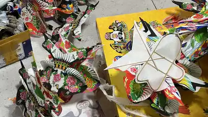 Here you can also see the differences between the old Weixian kites, old Weixian New Year pictures and Yangjiaobu. We follow the inheritor of the kite craftsmanship of Banmofang to make skeleton kites here. If you are interested, you can also experience the old Weixian New Year pictures (rubbings of New Year pictures).