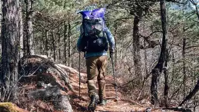 The trail is mostly downhill, with varied and interesting terrain, including rope-assisted sections and gravel sections. Bring your trekking poles, knee pads, and other gear.
