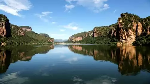Drive to Jingniang Lake. Nestled in the heart of the Taihang Mountains, Jingniang Lake is shaped like an inverted human figure, divided into two halves, east and west. Named after the poignant legend of Zhao Kuangyin's journey to send Jingniang off across a thousand miles, it's often called the "Three Gorges of the Taihang Mountains." Enjoy a boat tour of the lake, where the crystal-clear waters reflect the red cliffs of Chibi. Along with Guilin's Li River, it's known as one of Guilin's most majestic and beautiful sights, known as "The Great North and the Beautiful South." Explore scenic spots like "One Line of Sky" and "Dieyue Bridge" by boat, and experience the poetic feeling of sailing through a painting.