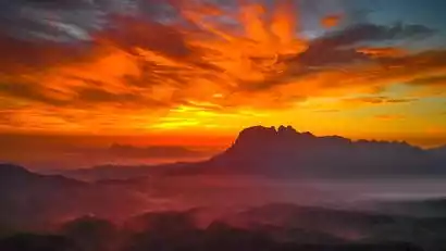 Afterwards, we'll visit Sifang Bridge, nestled between cliffs a thousand meters above sea level. This area is a Danxia landform, where red cliffs and quartz sandstone peaks intersect. Beneath the bridge, a vast abyss and swirling clouds create the spectacular spectacle of "clouds locking the red cliffs." After crossing Sifang Bridge, continue onward and take the Scenic Elevator, a ride that feels like a moment of soaring into the clouds. The sheer abyss and the swirling sea of clouds beneath your feet are a visual impact comparable to a high-altitude jump. After lunch, we'll continue to Taihang Pillar. Its sharp, angular stone pillars pierce the clouds like a sharp sword, sharing the same Danxia landform as the Grand Canyon in the United States and known as the "Soul of the Taihang Mountains." When shrouded in mist, the stone pillars appear and disappear, resembling a "magic needle stabilizing the sea" reaching the sky, creating a powerful visual impact. After crossing Taihang Pillar and passing the Tianji Great Wall, we'll reach Beigaofeng, located at the northern end of the East Taihang Scenic Area and the highest peak in the area, at approximately 1,428 meters. From the summit, you can overlook the vast Taihang Mountains. The rolling sea of clouds creates a fairyland-like experience. On clear days, you can gaze out over the ancient Wudang Mountains, Huaxi Valley, and other surrounding scenic spots. Known as the "Taihang Mountains' No. 1 Observation Deck," it's worth admiring the sunset over the East Taihang Mountains from Beigaofeng. As the sun sinks behind the peaks, the quartz sandstone rocks are stained orange and golden, intertwined with the swirling sea of clouds, creating a magnificent scene of "Red Cliffs reflecting golden light, sea of clouds ablaze with crimson clouds." Especially after rain, or during the peak cloud season in winter, the sunset offers a rich tapestry of light and shadow, resembling an overturned palette.