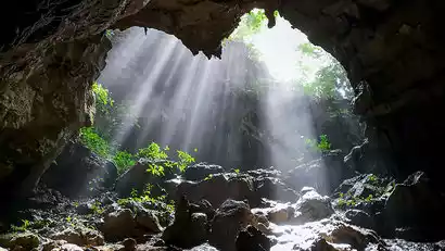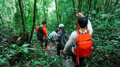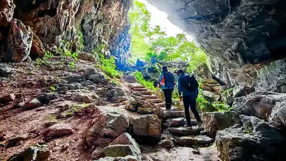 After breakfast, a quick warm-up at the inn, gear up and begin your hike along the mountain trail to the Maolan Four Caves. Start by visiting the first cave, Golden Lion Cave, a pristine, unlit cave that's easily accessible. Then, after a short climb, you'll reach the second cave, Nine Caves Heaven. The second cave hall is spacious, and on a clear day, you can even see the Tyndall Light streaming down from its entrance. Continuing along the trail, you'll reach the third cave, Fairy Cave, and the fourth cave, Black Cave. Fairy Cave is a place of prayer for locals. Exit the Black Cave and follow the trail downhill. Return to the inn around noon, collect your belongings, and board the return bus. Enjoy a light meal at a service area along the way.