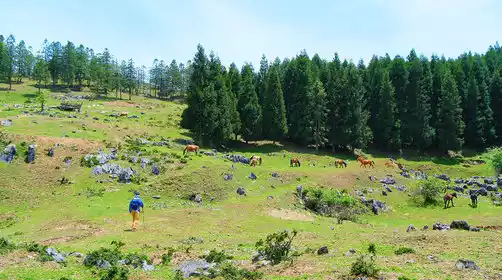 Arrive at the local town and transfer to a transfer vehicle to the starting point (transfer costs are at your own expense). Gear up and head toward the mountains, experiencing the thrill of stepping from a green forest into a vast expanse of woodland. Sit on the ground in the vast wilderness and share a delicious meal before continuing on your journey. Walk to the alpine grasslands deep in the forest, where you'll see herds of cattle and horses roaming the grasslands. The tranquility here feels like another world, and then slowly walk to the end point.