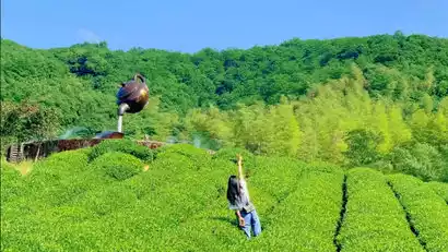 Yunhu Waterfall: Step onto the tea garden observation deck and you will see a hundred acres of tea garden. Looking out into the distance, you will see a teapot about two meters in diameter hanging upside down in the air, with a stream of water spraying out of the spout, which then turns into smoke and dissipates in the air.