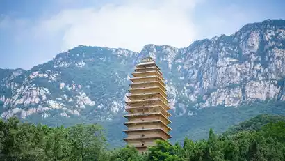 The Fawang Temple Pagoda, originally built during the Sui Dynasty, stands 34.187 meters tall. It is a 15-story, square, parabolic-shaped stupa located within the Fawang Temple, known as the "most scenic spot in Songshan Mountain." Founded in the Eastern Han Dynasty, Fawang Temple was three years later than the White Horse Temple in Luoyang and 424 years earlier than the Shaolin Temple. The Fawang Temple pagoda complex currently includes four Tang Dynasty pagodas, one Yuan Dynasty pagoda, and one Qing Dynasty pagoda. Fawang Temple Pagoda No. 1 is the tallest of these, a brick pagoda with stacked eaves and dense eaves. It is also the only Buddhist pagoda in the complex and is considered one of the three largest dense eaves pagodas of the Tang Dynasty in China, along with the Small Wild Goose Pagoda at Jianfu Temple in Xi'an and the Qianxun Pagoda at Chongsheng Temple in Dali.