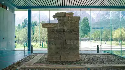 The Taishi Que, built in the Eastern Han Dynasty and the earliest of the three ques, originally served as a sacred que for the Taishi Shrine, the predecessor of the Zhongyue Temple. Constructed of chiseled stone, it stands 3.96 meters tall and is divided into two sections, east and west, with a distance of 6.75 meters between the gates. The east que stands 3.92 meters high, while the west que stands 3.96 meters. The two ques share a common structure, consisting of a base, a body, and a roof. The upper section of the que is carved from massive stones into a four-sided roof, with the six seal characters "Zhongyue Taishi Yangcheng" inscribed on the south side. Carvings and decorative motifs depicting chariots and horses, circuses, hunting, mythological stories, exotic birds and beasts, cockfighting, acrobatics, and pavilions are all featured on the Taishi Que, creating a simple and unsophisticated artistic style that exudes a profound and imposing aura.