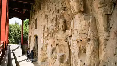 Construction began during the Northern Wei Dynasty. Currently, the grottoes contain five caves, one Thousand Buddha niche, three cliff sculptures, 225 cliff niches, 256 inscribed steles, and 7,743 Buddha statues. The style of the grottoes is similar to that of the Longmen Grottoes. While the carvings feature common Northern Wei grottoes depictions of Buddha, Bodhisattvas, disciples, seated Sakyamuni and Duobao, Vimalakirti transformations, and flying apsaras, the most distinctive themes are reliefs of worshipping processions, musicians, deities, and monsters. The Gongyi Grottoes feature large-scale group sculptures, including the most complete "Emperor and Empress Worshiping Buddha" in China. The grand scale of the scene, with consistent direction and costumes, creates a strong sense of unity, earning it the title "Unique in China."