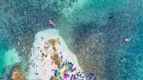 Great! Kayaking to Green Egg Island takes about an hour. Green Egg Island is named Green Egg Island because it resembles a fried egg when viewed from above, with the central "yolk" appearing green (from the greenery). There's a small beach on Green Egg Island with clear water, fine sand, and shallow water, perfect for snorkeling. (Note: Please bring your own snorkeling gear, or you can rent one at a kayak shop for HK$50.)