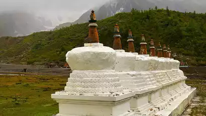 Check out the filming locations of "The Lost Tomb of the Sea": the prayer flag array in front of the temple, the prayer wheel corridor, and the snow-capped mountain viewing platform on the side