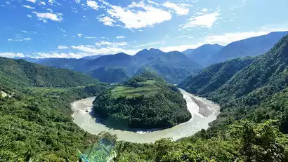 The 360-degree horseshoe-shaped bend of the Yarlung Zangbo River is truly breathtaking! It's like a god dropping emeralds into the chessboard of Medog's mountains, and the roar of the river is accompanied by its own reverberation.
