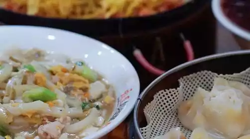Around 2:30 PM, we returned to our starting point. Xinchang is a haven for snacks, with the aroma of lamb bones, fresh taro dumplings, and tofu pan-fried dumplings filling the streets. The thin-skinned buns, topped with a delicate egg, are crispy yet not hard. For those who enjoy a sour taste, try Xinchang's specialty, rose rice vinegar. Grilled rice cakes and pot-pulled tofu are also Xinchang specialties. Tourists, fill your stomachs! We'll feast!