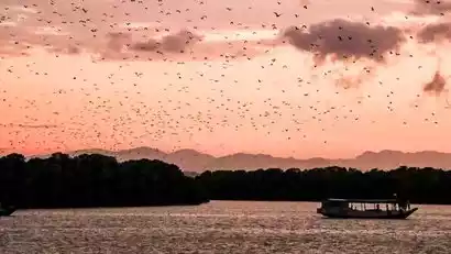 Bats emerge from their nests at sunset, creating a wild and romantic scene in the sky