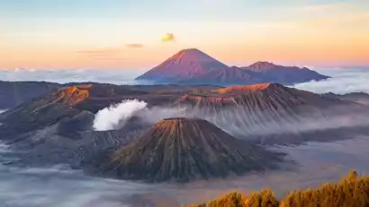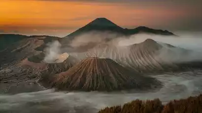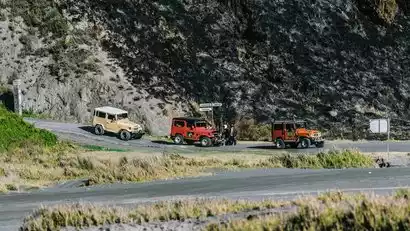 After watching the sunrise, our guide will lead us to take photos at nearby viewpoints. We'll then take a jeep to the base of Mount Bromo and cross the sand sea basin. This is actually a massive ancient crater, over 10 kilometers in diameter, left behind by the eruption of Mount Tengger. Five smaller volcanoes have since formed here. Mount Batok, the only extinct volcano, stands at the center of the action. The remaining four are active, and Mount Bromo, with its constant puff of smoke, is undoubtedly the most restless. We'll then ascend to Mount Bromo Crater for a close encounter with the volcano.