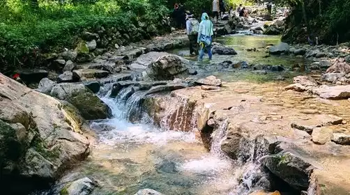 Halfway through the trail, the path is filled with gurgling streams, a truly delightful experience. The majestic Wulongtan and the graceful Bailongtan create a natural contrast. During the flood season, you can enjoy the creeks, while during the dry season, the rocky beaches reveal a Zen-like atmosphere. Halfway through, you'll find yourself in a secret bamboo forest, where fallen bamboo and vines intertwine to create a pristine gallery. The occasional chameleon flitted by, creating a sense of time travel amidst the surging greenery.