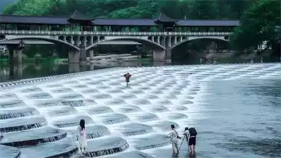 It is called Longlin Dam because its shape resembles fish scales. It is now a popular check-in spot in Fuyang.