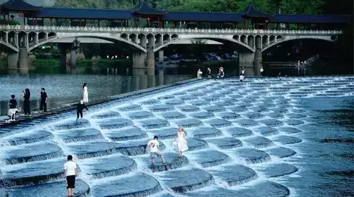 It is called Longlin Dam because its shape resembles fish scales. It is now a popular check-in spot in Fuyang.