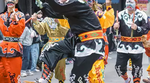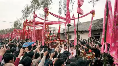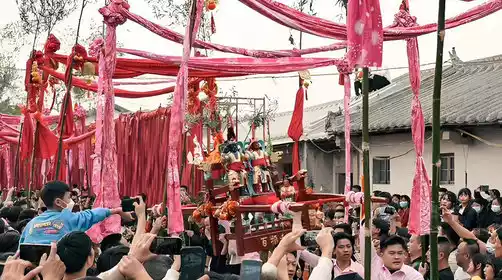 Liucuo, Fengxi Village, holds a folk cultural parade on the 20th day of the first lunar month each year. A key feature of the parade is the "Walking Along the Colored Flag Alley." Every male born in the village the previous year is given a colorful flag. When the parade reaches the ancestral hall, all the flags are unfurled, each about four meters apart, forming a vibrant alley. When the master enters the alley, the young men carrying the sedan chair light firecrackers and carry it at breakneck speed through the alley and into the ancestral hall. This exciting and lively process is known as the "Walking Along the Colored Flag Alley."
