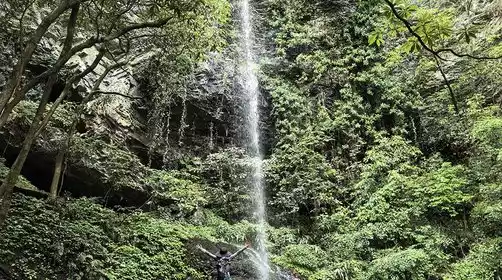 Arrived at the starting point of the hike. When the water is sufficient, the water curtain drops up to 120 meters. The clear and cool water cascades down from the vertical cliffs and flows into the pool. Isn't this the small Water Curtain Cave in Anji's "Huaguo Mountain"?