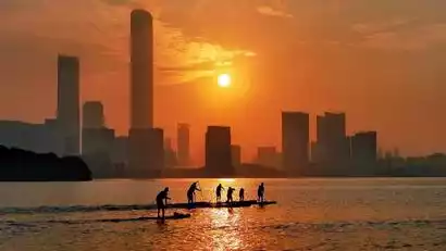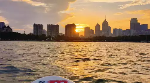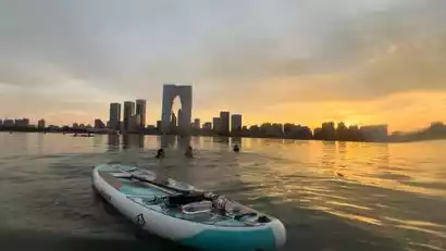Surrounded by skyscrapers and under the gaze of the Oriental Gate, you slice through the clear blue waters. The freely flowing water beneath your feet, the stunning skyline before your eyes—this is the "urban surfing" that is unique to Jinji Lake!