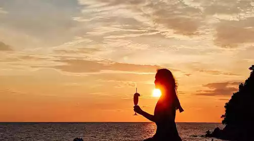 Sunset Cruise: Available from 6:30 PM to 7:30 PM, for 2-4 adults, enjoy a sunset cruise aboard our oriental teakwood sailboat, creating an unforgettable evening. Witness the stunning sunset from the center of the ocean near dusk. Enjoy complimentary drinks, wine, and snacks as you admire the beautiful islands at sea, soaking up the golden sunset.