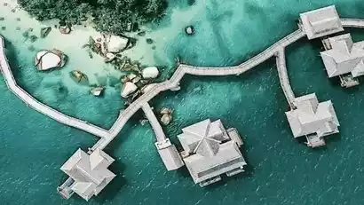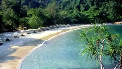 The Pangkor Laut Resort is located on a private island in the Strait of Malacca, three miles off the west coast of Malaysia. It boasts two million years of pristine tropical rainforest, surrounded by soft white beaches and a pristine bay. Only a small portion of the island's 300 acres has been developed into the Pangkor Laut Resort.