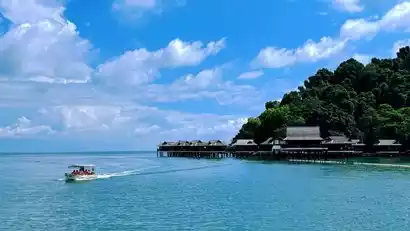After breakfast, our private car drove along the West Coast Highway to Marina Island Pangkor. Our attendant took our luggage and guided us aboard the resort's exclusive speedboat. Over the 15-minute journey, the emerald waters gradually transformed into a jelly-like blue, and Pangkor Laut Resort emerged like an emerald gem on the Andaman Sea.