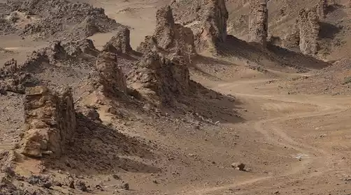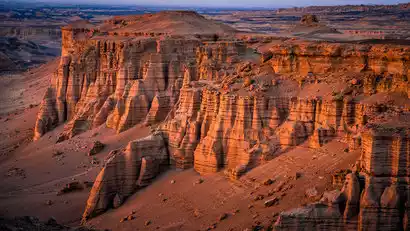 After breakfast, depart for the Dahaidao (Great Sea Road). Named after the vast sea of sand, the Dahaidao, also known as the Sand Sea Road, boasts a rich tapestry of ancient castles, beacon towers, post stations, prehistoric settlements, fossil mountains, mirages, herds of wild desert camels, and numerous other rare landforms. The Dahaidao runs southeast, stretching from Dikaner Village in Turpan, Xinjiang, in the west to Yumen Pass in Gansu, covering a distance of 456 kilometers. At its ends, it connects two important historical and cultural centers along the Silk Road: Turpan and Dunhuang.