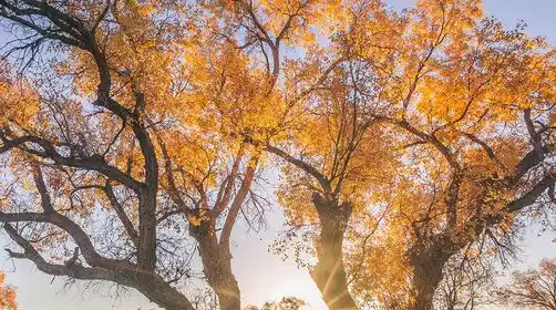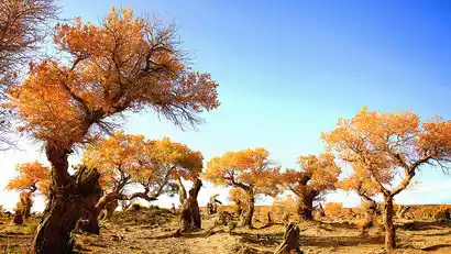 Explore the Yiwu Poplar Forest, where poplar trees, desert, and wasteland blend harmoniously with the blue sky and white clouds, echoing the beautiful Tuomurti Snow Mountain in the distance. Take a scenic bus deep into the forest, discovering the most beautiful trees along the way, or stroll along the train tracks and take photos amidst the golden trees.