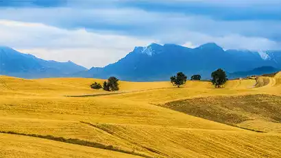 Jiangbulake means "holy spring" or "spring of life" in Kazakh. Spectacular golden wheat fields, the mysterious slopes of the Tianshan Mountains, and the beautiful Jiangbulake forest-steppe are all within sight. Amidst the endless mountain ranges, golden wheat fields dotted with a few ancient trees, snow-capped peaks, mountains, forests, grasslands, cattle, sheep, and yurts... The area maintains its pristine natural ecology and unique alpine grassland scenery.