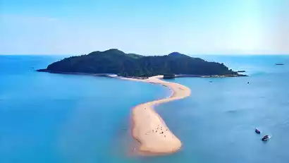 4. Depart for the pier at approximately 2:30 PM (approximately 40 minutes by car) and board a small speedboat (capacity 4-6 people) to the upgraded Fishbone Sandbar, a hidden gem of Chengzhou Island (approximately 5 kilometers away). This island is surrounded by mountains on three sides and the sea on one side. At low tide, an umbrella-shaped beach (locals call it "Umbrella Island") appears in the middle of the ocean, covering over 100 acres. The water is crystal clear, and you can even catch a small wave (approximately 1 hour).