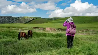 Today we hiked about 5 kilometers. As the morning forest began to awaken, we walked through a spruce forest at an altitude of 2,800 meters. Pine needles and soft paths lay beneath our feet, and dew clung to the moss. The air was filled with the scent of trees and earth. As we reached open areas, we occasionally encountered cattle grazing. As sunlight gradually filtered through the branches into the forest, illuminating the soft moss, we entered this dense coniferous forest and embarked on a deep hiking journey. Every step explored the natural fabric, and every pause revealed the unique vitality of the forest. Here, we allowed our body and mind to fully relax in the pure nature of the hike.