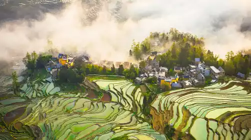 Visit the Hani village of Azheke at an appropriate time. Azheke has perfectly preserved the four elements of the Hani people: forest, water system, village, and terraced fields. Known as "Terrace Homes Above the Clouds," the village's well-preserved mushroom houses are a testament to the Hani people's wisdom. Your guide will explain Hani customs, followed by a stroll through the terraced fields, allowing you to experience the charm of these millennia-old terraces up close.