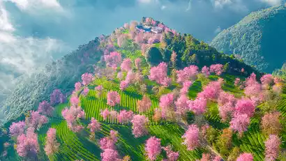 Visit Wuliang Mountain Cherry Blossom Valley. While the north remains frozen and snowy, the cherry blossoms of Wuliang Mountain in Dali have already dyed thousands of acres of tea plantations red. This is undoubtedly the first place where spring arrives. Tens of thousands of pink winter cherry blossoms, unique to Yunnan, complement the tea plantations beautifully. The cherry blossom season is extremely short, lasting only three weeks a year; miss it and you'll have to wait another year.