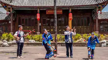 Afterwards, we visited Shilong Village, the "hometown of Baiqu," where we visited the home of a Bai ethnic minority inheritor of the Shibaoshan Song Festival, enjoying an authentic Bai ethnic group family feast. In the past, Shilong Village was relatively isolated due to transportation and other factors, less exposed to foreign cultural influences and thus preserved the intact Bai ethnic group's original ecological culture. Bai folk songs and dances, such as the Bawang Whip, the Sanxian (three-stringed instrument), Bai ethnic tunes, Dongjing music, and rural opera, have been well-preserved, earning it the reputation of a living fossil of Jianchuan Bai culture. While enjoying the Bai ethnic group family feast, the host will perform Baiqu, an intangible Bai ethnic heritage, accompanied by the rhythm of the Bai ethnic group's dragon-headed Sanxian (three-stringed instrument), welcoming guests from afar with songs. If you're interested, you can also learn a piece of Baiqu from the teacher.