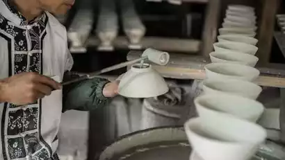 [Azure sky, misty rain, picking up pieces of glaze color through the morning and evening - Jingdezhen]
