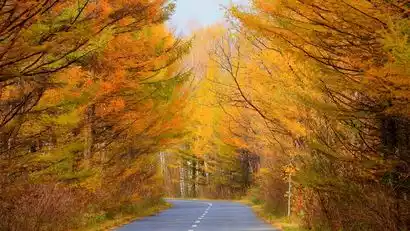 Riding on the forest path and passing through the sea of trees, you will see gorgeous autumn colors along the way and beautiful scenery at every corner. Whether it is the road covered with red leaves or the view of the forest with intertwined branches and leaves, it is worth capturing.